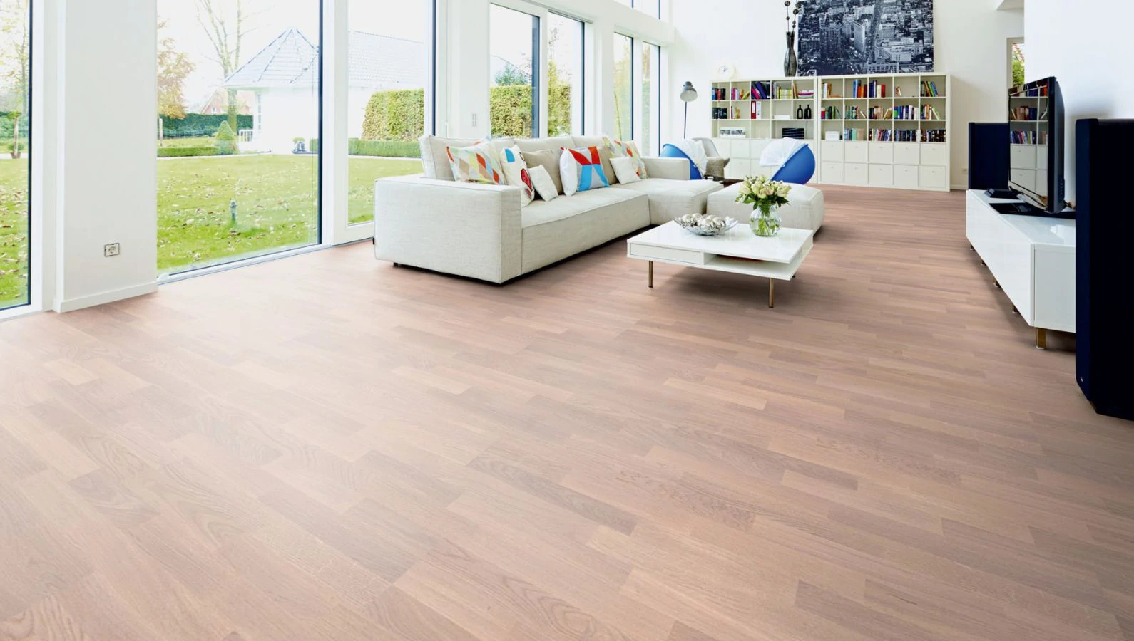 Wind and weather, storm and calm, light and shadow – we combine the many facets of nature in the Pride of Nature collection with classic 3-stripe flooring. The characteristic quality shows the structure of the wood to perfection, emphasized by the intense brushing. We treat all the surfaces of this collection with natural oils. This allows the full range of wood colors – the Pride of Nature – to shine through. This wood breathes deeply and possesses all the healing power of wood. When installed, these versatile 3-strip floors create a vibrant floor aesthetic